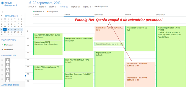 Vous avez la possibilité d'intégrer votre planning au sein de votre agenda personnel. Ce dernier doit supporter la norme ICalendar, un standard ouvert utilisé par de nombreux agendas tels qu'Outlook, Google Agenda, Thunderbird...