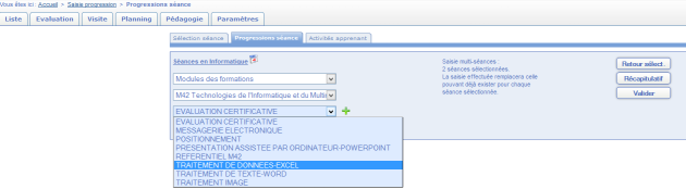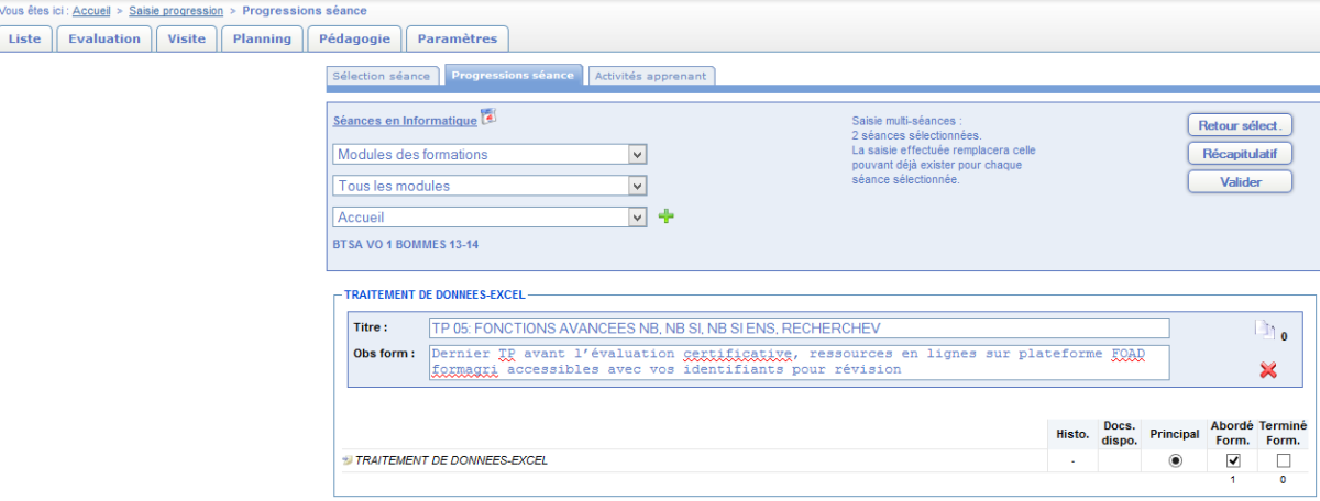 Méthode : III.5.1 Depuis le menu Pédagogie, Saisie Progression