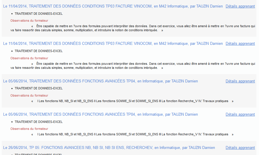 - Aux renseignements individuels si vous cliquez sur le nom de l'apprenant