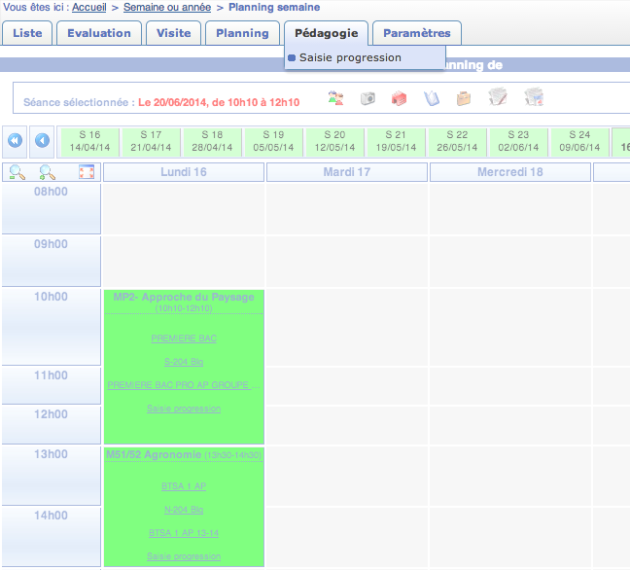 Vous avez la possibilité de saisir votre progression à partir de du menu Planning, semaine courante.