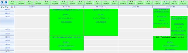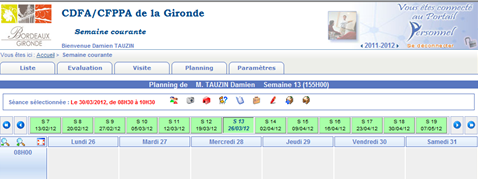 Sur cette fenêtre vous avez la possibilité de sélectionner la semaine de cours pour faire apparaître vos séances planifiées.