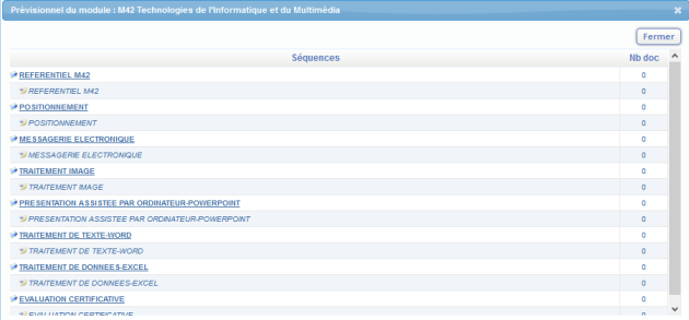 vous permet d'afficher le prévisionnel du module