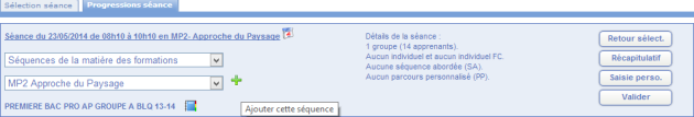 vous permet d'accéder au détail de votre progression sur la séance, c'est a dire ce que vous avez saisie sur le cahier de texte numérique