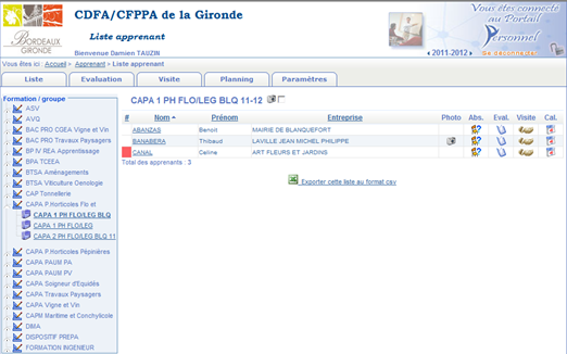 Ce menu vous permet d'accéder aux visites à réaliser ou réalisées de vos apprenants, (CF procédure : Visites Pédagogiques et Visites de Stages).