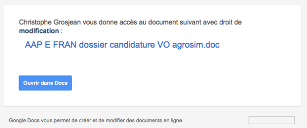 Ce compte va maintenant servir à effectuer une demande de modification de document au propriétaire du site collaboratif