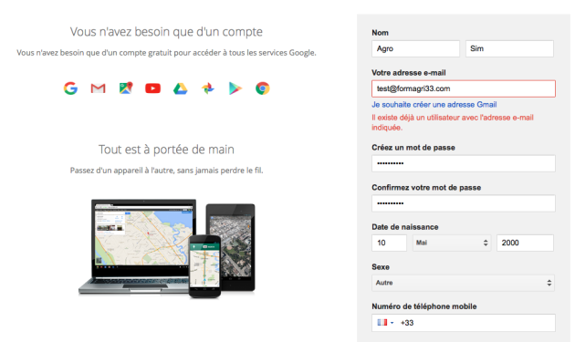Son ouverture nécessite un compte. Ce compte doit être obligatoirement une adresse mail valide.