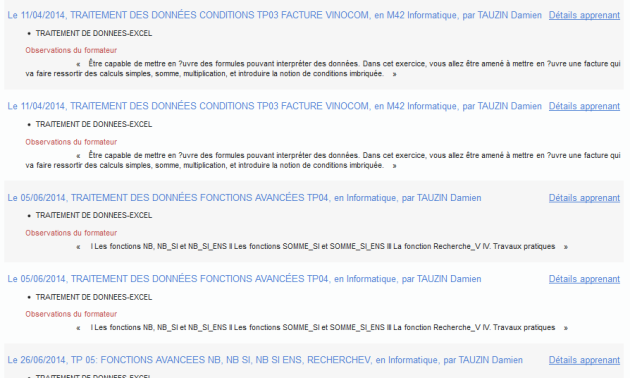 - Aux renseignements individuels si vous cliquez sur le nom de l'apprenant