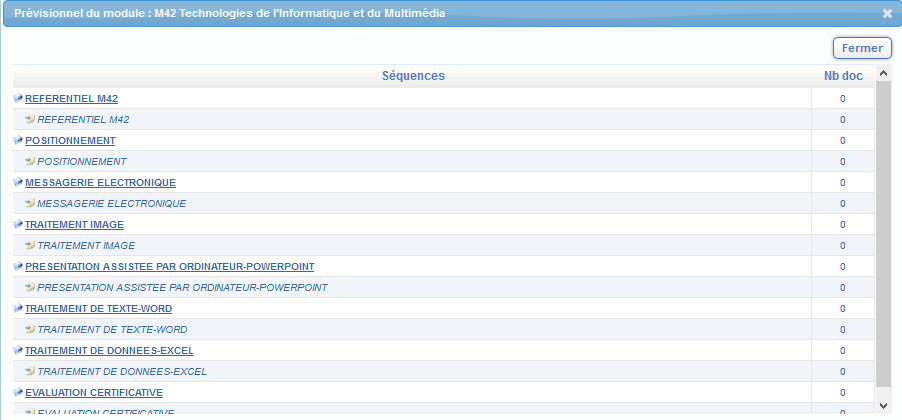 vous permet d'afficher le prévisionnel du module