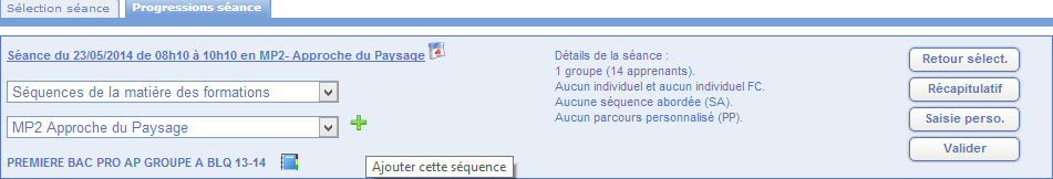 Cochez les séances sur lesquelles vous voulez saisir le travail que vous avez fait et cliquez sur Saisir ![]()