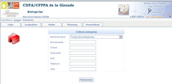 Ce menu vous permet de réaliser une recherche sur une entreprise et d'accéder au détail de sa fiche descriptive